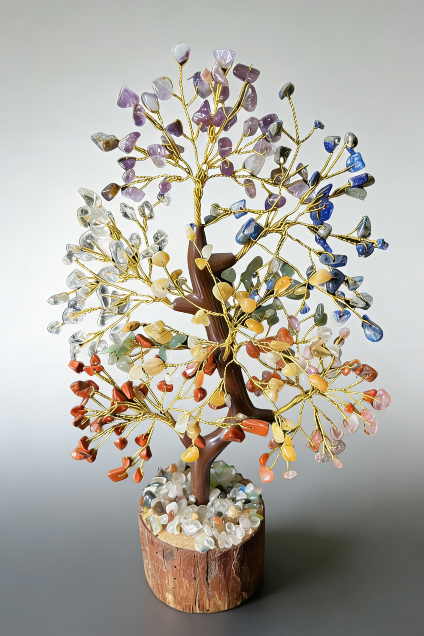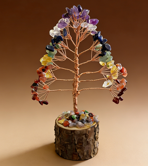 Seven-Chakra Crystal Tree W1, also known as Feng Shui Tree of Life, uses 126 colorful raw crystal gemstones and a solid wood base to preserve the original natural scent, exquisite and stylish